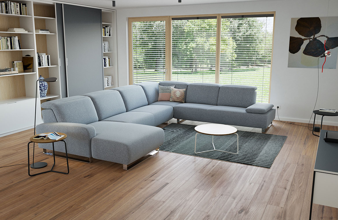 The Feel sofa coverings are manufactured from natural leather as well as from microfibres and upholstery fabrics. This sofa looks best with coverings made of fabrics available from a wide range of colours and patterns.