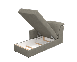 Samostojni enosed ležalnik z vgrajenim dvižnim predalom.