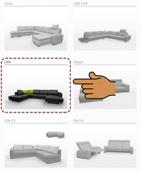 Vsak model sedežne garniture izdelamo namreč po vaših željah, katere izrazite v naslednjih dveh korakih.