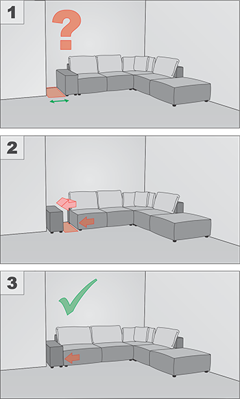 Izvlečno ležišče se lahko vgradi v poljubni element sedežne garniture (trosed, dvosed, kotna izvedba, U postavitev) v poljubni velikosti.