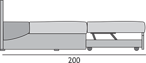 Če izvlečemo še sedišče in naslonsko blazino potisnemo za sedež, dobimo ležišče dolžine 200cm.