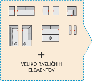 Izvlečno ležišče se lahko vgradi v poljubni element sedežne garniture (trosed, dvosed, kotna izvedba, U postavitev) v poljubni velikosti.