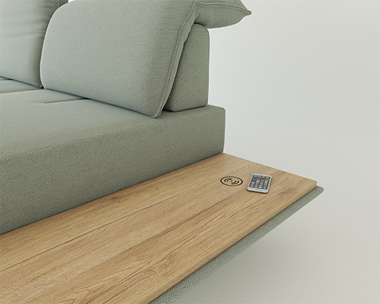 Elementu s polico lahko vgradimo brezžični polnilec, ki vsebuje tudi opcijo polnjenja preko USB kabla za mobilne naprave.