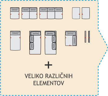 Vsak sedežni element ima lahko vgrajen odprt element oz. zakljucek (skupna blazina s sedežem) poljubne širine.